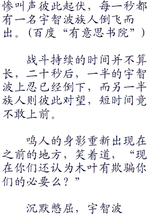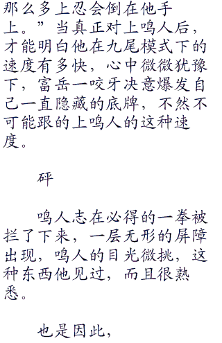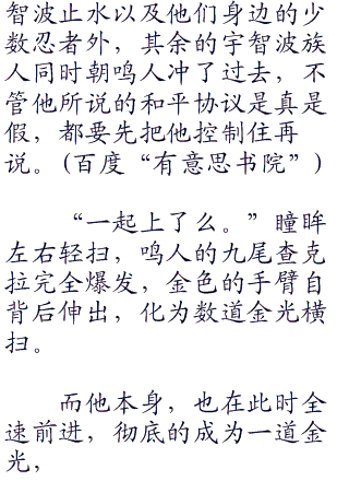 “小子,为你的自大付出代价吧。)”宇智波的二长老一声冷哼,血红的三勾玉锁定鸣人,瞬身术之下刹那出现在鸣人的身前,直朝他的要害抓去。