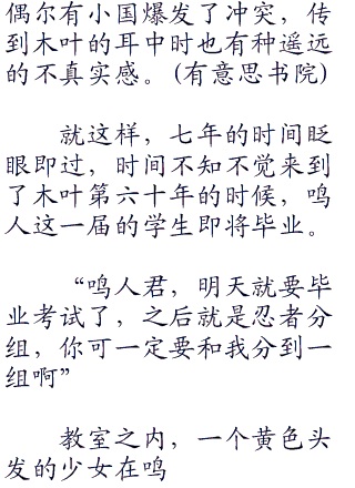 一切都走向了正轨,木叶按照他特有的轨迹运作,整个忍界也趋于平静,