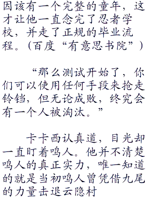 他会信卡卡西的说辞才是见鬼了。更何况,别说是抢铃铛这种测验,就算是超s级的实战任务,对于现在的他来说也没有任何难度。