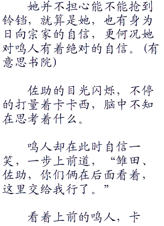 卡卡西明显没有顾忌他们想法的念头,自顾自的道,“好了,可以开始测验了,不合格的人今天中午将没有饭吃。”