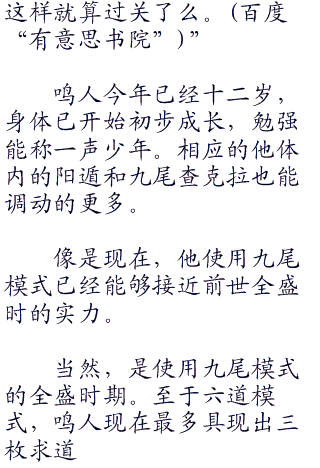 至于鸣人,他仰天打个哈欠,看着天空中飘飞的朵朵白云,心中满是无奈。
