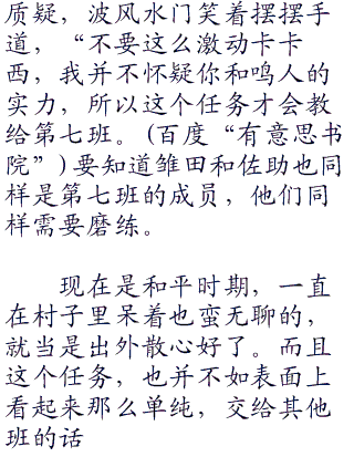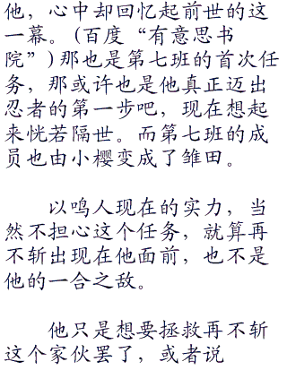 而第七班的三人也好像自此放假了一样,在一周多的时间内都没有再见到卡卡西的身影。