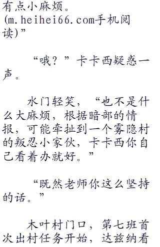 想到这里,卡卡西仰天轻叹一声,事已至此,只能走一步看一步了。
