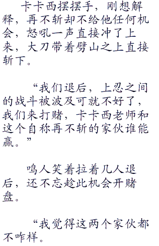 “现在的小鬼,还真是不讨人喜欢。(..)”卡卡西的身影出现在树干处,无奈的看了鸣人一眼。