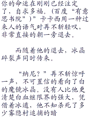 看着升起的冰晶,卡卡西轻捂了下额头,突然觉得或许自己不用累死累活的动手了。