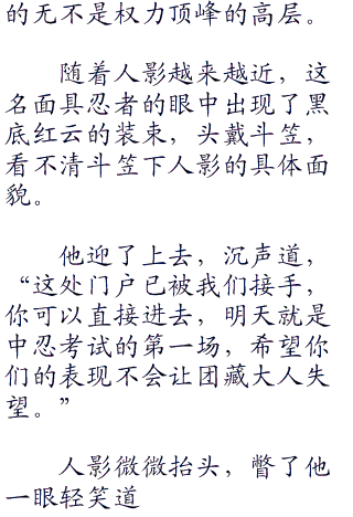 鸣人和我爱罗他们的冲突,仅仅是一段微不足道的插曲,并没有引起太多人的注意。(..)