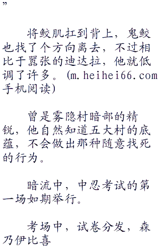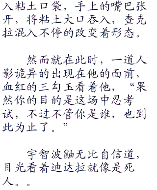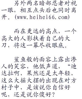 “这就是木叶么,也没有人特殊的地方啊,切”迪达拉看着不停穿梭的人群,心中发出一声“六九七”不屑。
