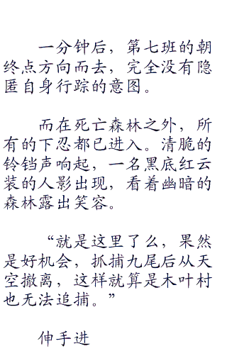 而他显然没有那份闲心,在佩恩下达命令后,他就决定独自一人赶来了木叶。