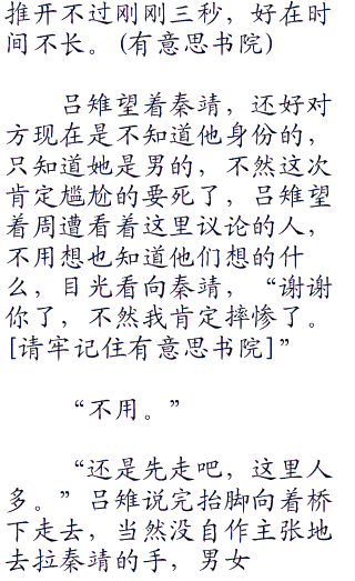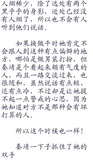 毕竟倒在怀中的,除了秦靖知道是个女的,其他人全都当做男子,而两个男子这般暧.昧的姿势...