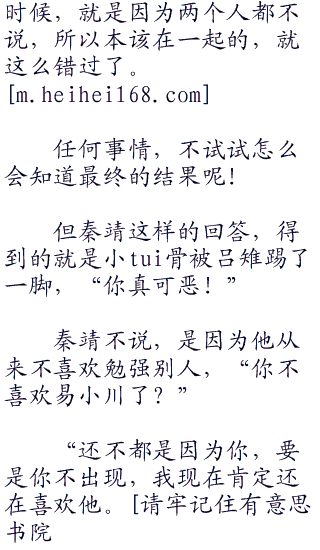 所以即便吕雉也是一个非常漂亮,有着个性的女孩子,却也再让易小川有任何想法,在他还年轻的时候,在二十一世纪,他玩乐,夜间在酒吧里泡吧,搭讪各种各样的美女,他已经体会过各种风.情,那里不需要任何的负责,就算分手,也可以轻而易举,但在这里,这个时代他无法驾驭,他所能做的,只是紧紧抓住这来之不易的幸福,不再松手。