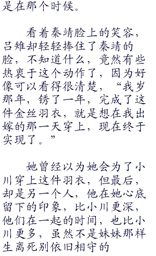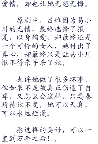 虽然三妻四妾,在很多人看来是件幸福的事情,但正因为经历过,明白过,易小川才觉得,一辈子只珍爱一个人,有一场轰轰烈烈过后,可以平平淡淡的爱情,是种怎样的幸福。