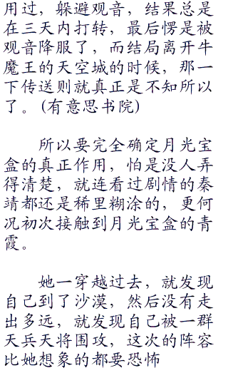 如果当初穿越的时候,也是这般,那么月光宝盒似乎就应该跟着他一起走了,但结果却是他根本没有发现任何宝盒的迹象。