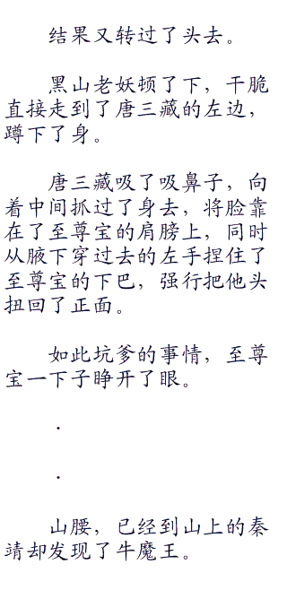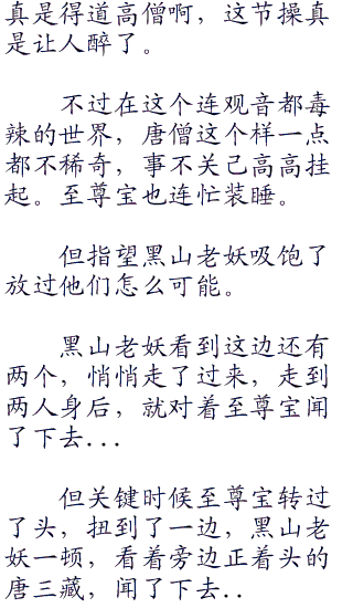 突然其来的声音吓了至尊宝一跳,一转头就看到了旁边不知道什么时候突然出现的唐三藏,“悟空,你又扮人样了,还认得为师吗?”