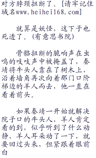 这三个侍卫,两个牛头人,一个是羊角羊人,分别站在靠近院落门口的位置,东侧墙边树旁,还有距离院内屋门外不远的地方...