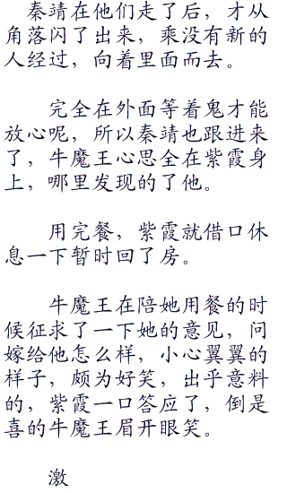 醒过来的紫霞发现自己居然躺在秦靖怀里,他还抱着自己的腰,连忙挣脱了开来。