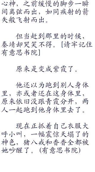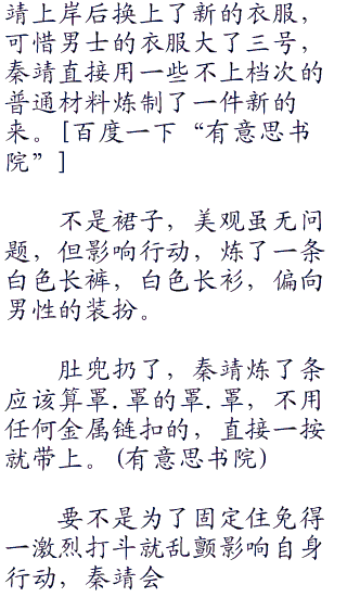 秦靖找到了山泉边,望眼四周,除了清晨的清脆鸟鸣声再没有任何一丝人影踪迹,估计也没谁会嫌到一大早跑到这里来无所事事,秦靖看了眼自己的衣服,嘴角抽了两抽...