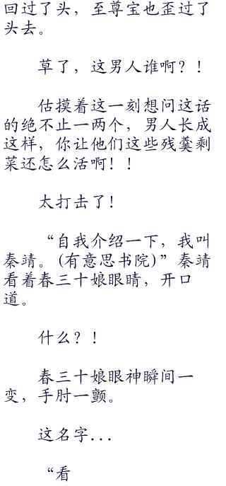 “我要在这里逗留片刻。”背对着至尊宝的春三十娘伏在水池上,面挂着笑容对着身后说道。
