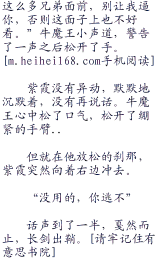 匕首阻隔在了牛魔王胸前,被一只手腕牢牢抓住,牛魔王那铜铃般硕.大的牛眼看着紫霞,没有一丝吃惊,“你真当我不知道,没想到你居然真的做这种天真的事情!”