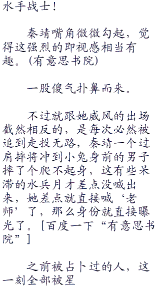 奈留和秦靖全部回过了头,随着那清脆的少女声音,一道蓝白相间的水手群和水手服出现在了视线当中。