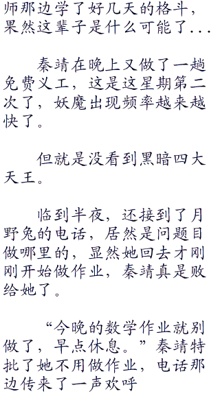 “老师,我请你吃饭。”下了课,等到补习的时候,小兔对着秦靖道。