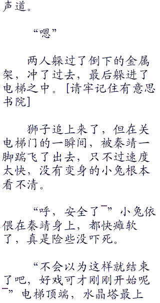 今天是星期六的下午,小兔是中午过来的,他们断断续续,也练了两个多小时了。“我好累了,不如一起去逛街吧。”小兔虽然对这种打斗可以贴身接触的事情很乐意,但明显逛街更有趣,于是说道。