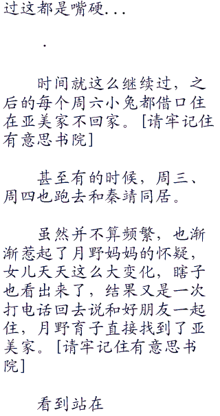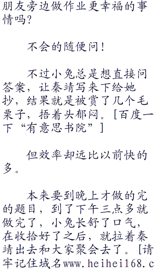 小兔也不是真的全是欲.望,更多的是在意秦靖,心中想要能真正成为他的女人,跟他永远在一起。就算女生比同龄男生发育的快,东京的文化也甚为开放,也不可能让一个初二的小女生一下子就懂得甚多~
