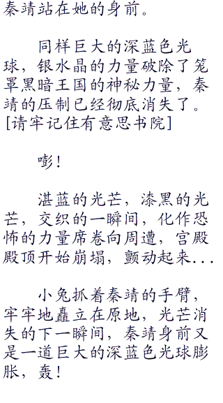 水晶漂浮在小兔的手心中,一点点没入了秦靖的心口,最后光芒消失在了他的体内,小兔的眼泪依旧在滴,落在了秦靖的脸上,让他一点点睁开了眼...