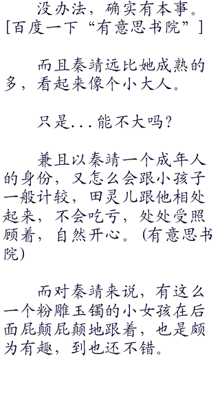 而田灵儿虽然调皮,但跟秦靖关系却不错,毕竟是一个娘胎出来的亲兄妹,除了父母外,便是最亲近的人,加之整个大竹峰也就这么一个年纪相近的,想关系不好都难。