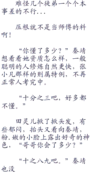 不过生性要强,依旧刻在骨子里,喜好动武,三天两头操练大竹峰那群不成器的徒弟,弄得整个大竹峰七个徒弟看到她比看到田不易还害怕。