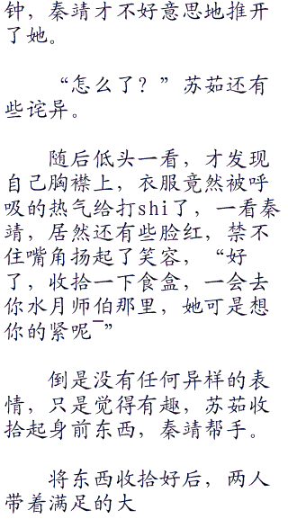 看着那凝视着自己的视线,和薄怒的表情,秦靖这才从她裙子口抬起了脑袋,从竹叶上坐起了身。