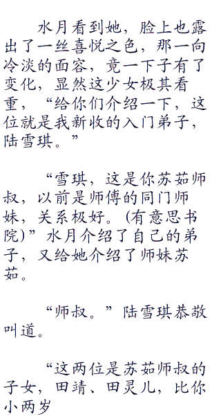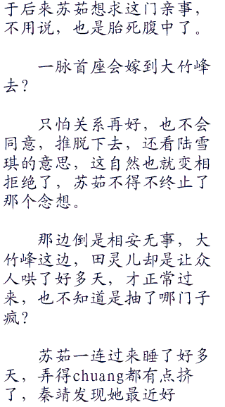 “道玄掌门挑选两个弟子,各个是男的,你说我小竹峰去干嘛,不如眼不见为净。”水月解释道,而且田不易也去了,她就更不想去了。