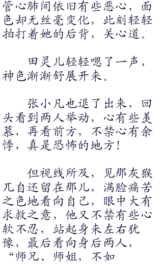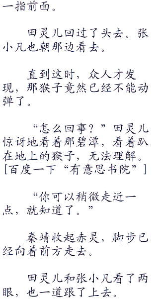 灰猴一路逃向幽.谷深处,张小凡从秦靖身后向前望去,只见前头