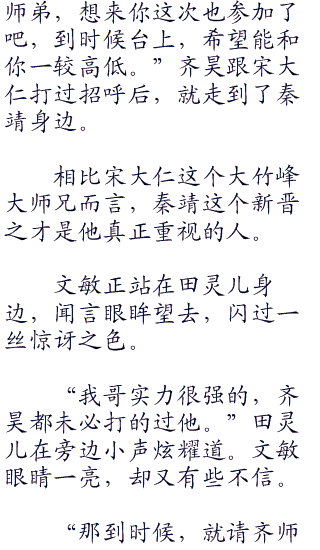 “师弟,灵儿师妹跟你真亲近啊,你们兄妹关系很好吧?”文敏手拉着田灵儿的手,看着右边道。