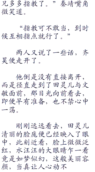 秦靖被田灵儿的手抓住,隔在了文敏的另一边。