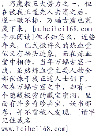道玄真人缓缓道:“诸位有所不知,这万蝠古窟虽然看起来人畜不近,但在八百年前,却是魔教的一个重要据点。那古窟中寒冷阴湿,正好适合那些邪魔外道修炼妖法。后来在我正道人士围剿之下,魔教孽障败退而走,此处遂荒废下来。”