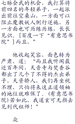 水月这般对道玄说话,态度可以说颇不友善,但在座之人都知道水月大师对人说话从来如此,道玄真人也不放在心上,只叹了一口气,道:“水月师妹有所不知,就在半年前,我得到焚香谷一份传书,说是近来在那万蝠古窟附近,似又有魔教余孽活动迹象,并以此征求我的意见,我思量之下,便令二徒逸才急速前往空桑山查看一下。”