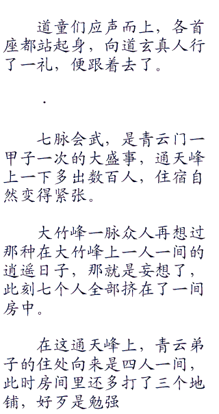 前面带路的通天峰弟子已经等了有一会了,到也不能太耽搁。
