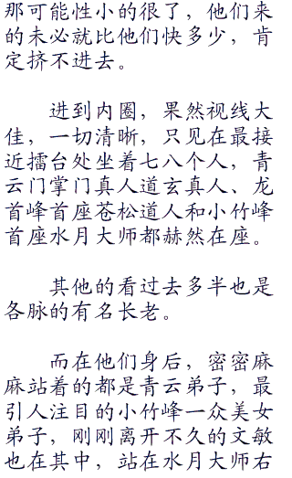 此刻八座擂台中,那座最大的“乾”台,放眼看去,人山人海,几乎挤得水泄不通,看这样子少说也有四五百人,整个广场上,至少有一半以上青云门人都聚在这座台下,而尤其引发的,其他台下则几乎人迹寥寥。