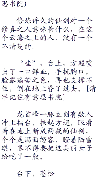 同时右手五指曲伸,法诀紧握,那天蓝仙剑顿时在半空中大放光芒,蓝光覆盖了整个巨大擂台,仙气腾腾,显然决非凡品。