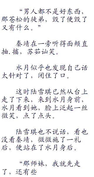 在众人惊讶眼光之中,只见陆雪琪丝毫没有犹豫,雪白脸上一道微微粉红掠过之后,右手一抛,竟是把这柄天蓝色宝剑连着鞘都抛了出去。