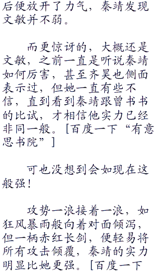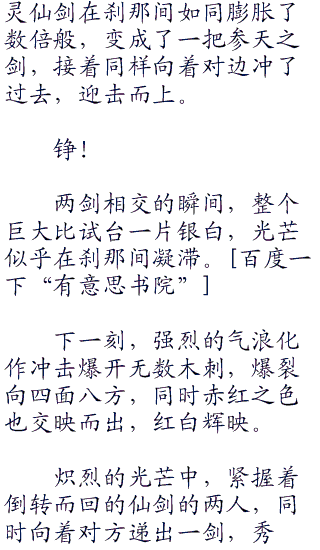 但更美丽的,却是穿来飞去的两位年轻女子,这一场比试从开始到现在,过了十数分钟,双方还是未分胜负。