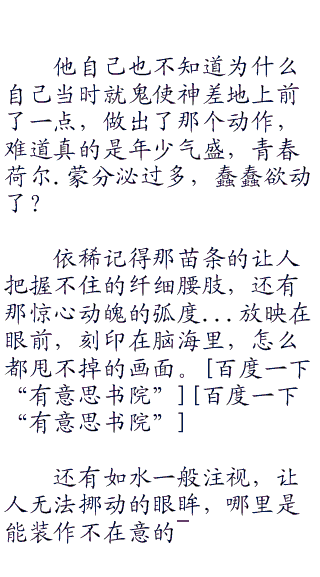 而且,那瞬间,她分明地感觉到,就在那一分闪躲的惊慌下,还有着一丝她无法察觉的期待。
