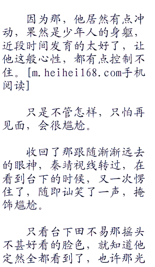 台上,秦靖尴尬地看着文敏渐渐离开的背影,止住的脚下,最终没好意思再踏上前一步。