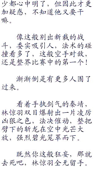 偏偏这又不是正常时候,连说都不能说,别人也不是他们龙首峰的人,他们都是来看比试的,他的权威也拿不出来,直让他坐立不爽。