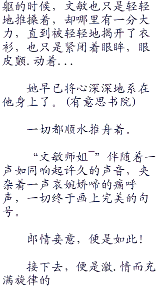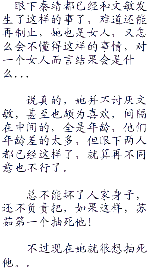 秦靖就喜欢这种打破她强势模样的样子,当初牵着自己手,像个大姐姐一样的文敏师姐,如今娇.羞地看着自己,任人轻薄的敏儿...