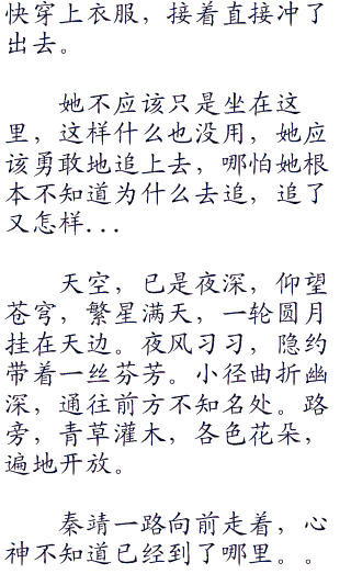 秦靖看了看屋子,只怕这点大地方还不能施展,遂道:“房间里施展不开,去外面试试看吧。”