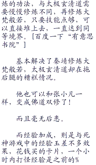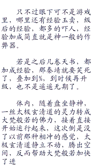 没有比拥有佛道功法的自己,现在更需要这第一卷了,天书五卷中,第一卷是基础,也是佛道融合的法门,没有这一卷,后面修炼绝对难上加难,秦靖一直没能练成大梵般若,绝对是有原因的。