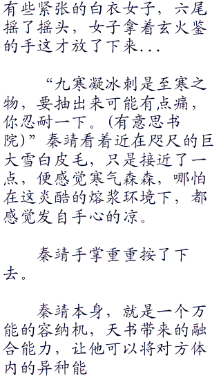 而在它的身后处。那里,漂亮的皮毛处,安静地卷着它的尾巴,柔.软而美丽,六只雪白的尾巴。