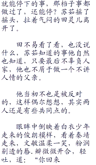 她就那么俏生生地站在那里,虽不如旁边的陆雪琪那么惊.艳世人,却也有着自己难以言饰的美丽。