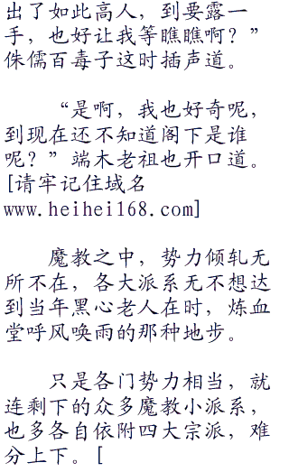 光这四个人,便压制的大多数魔教妖人抵抗不住,宋大仁修为第五层,也同样不弱,怪不得鬼王几人要将这些人消灭在萌芽,一旦成长起